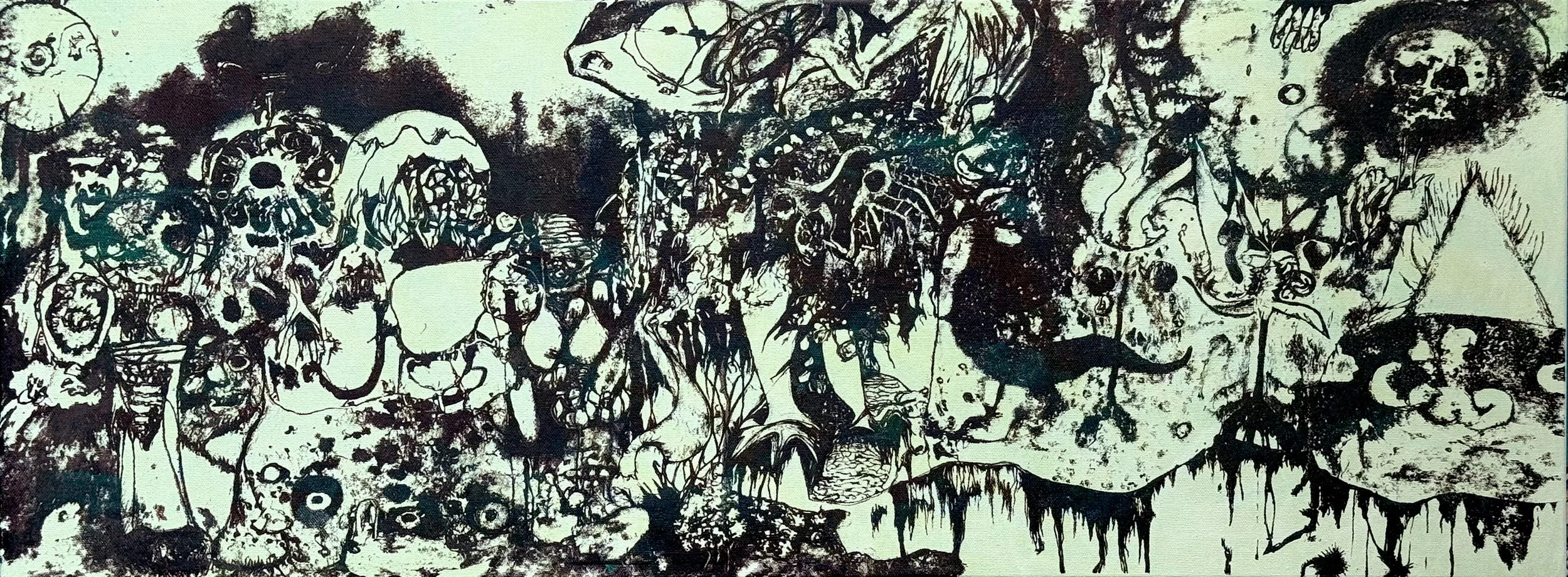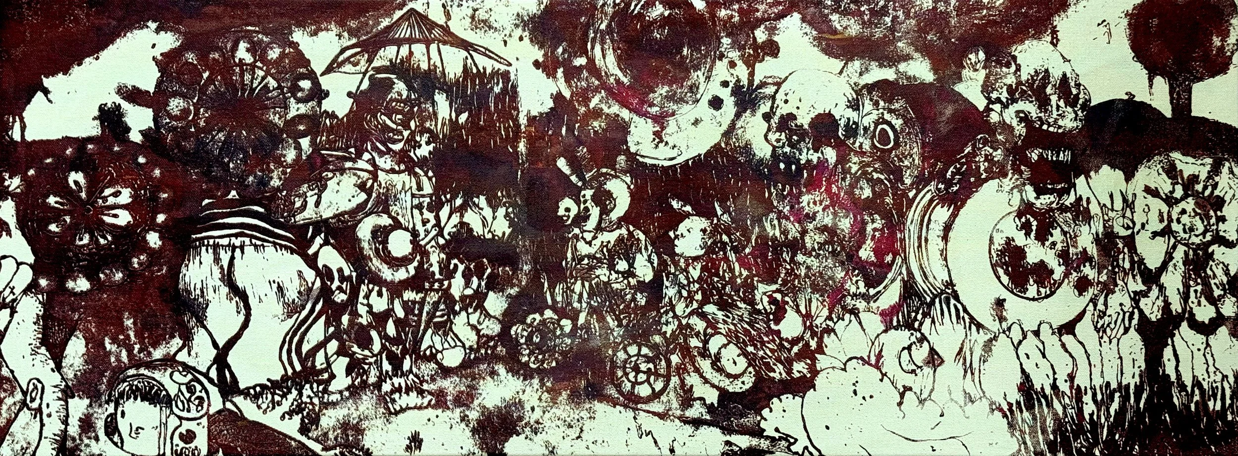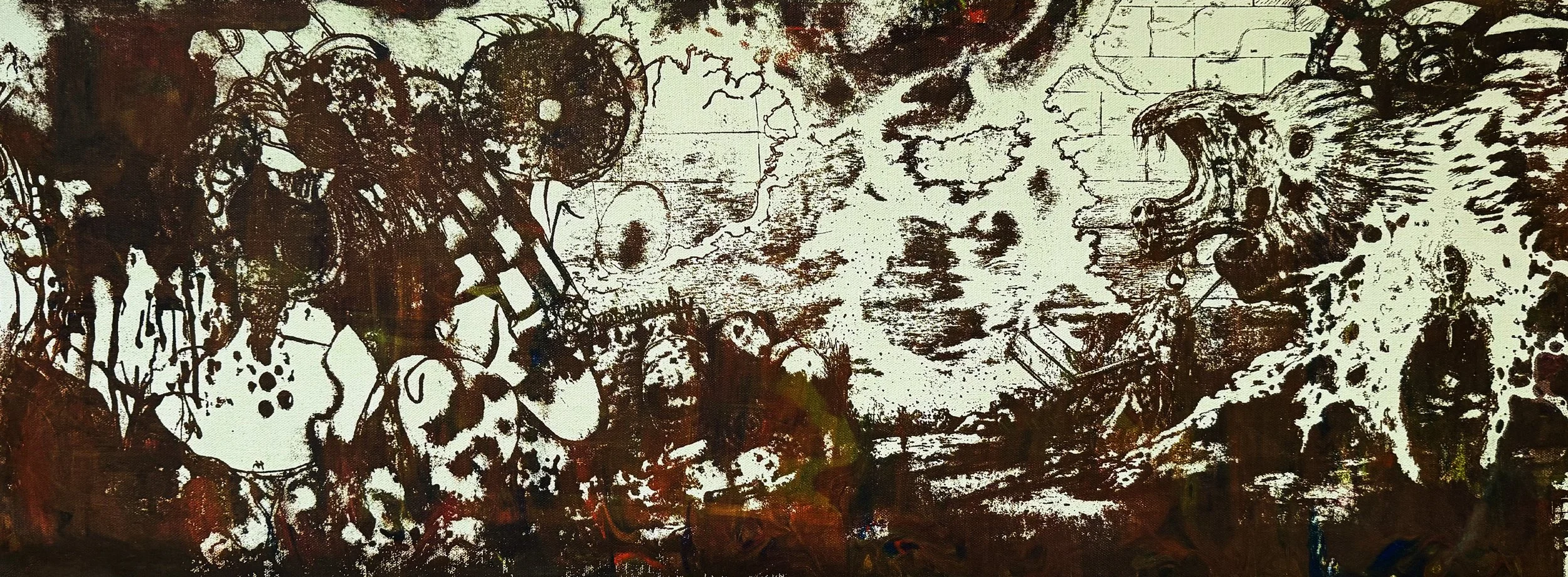 The works explore a tense state that emerges when stable models of artistic identity are lost and cultural reference points begin to dissolve. In contrast to the accelerated logic of digital production, painting here functions as a slow and resistant medium, one that captures shifts and ruptures. The dominant color — a dense dark brown, close to the shade of coagulated blood — reinforces the sense of time and the physical weight of the painterly gesture.