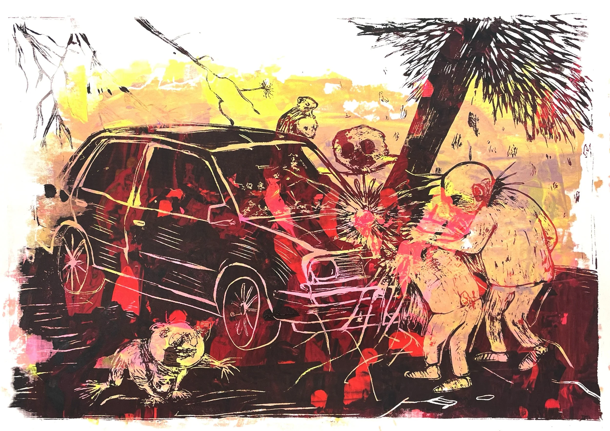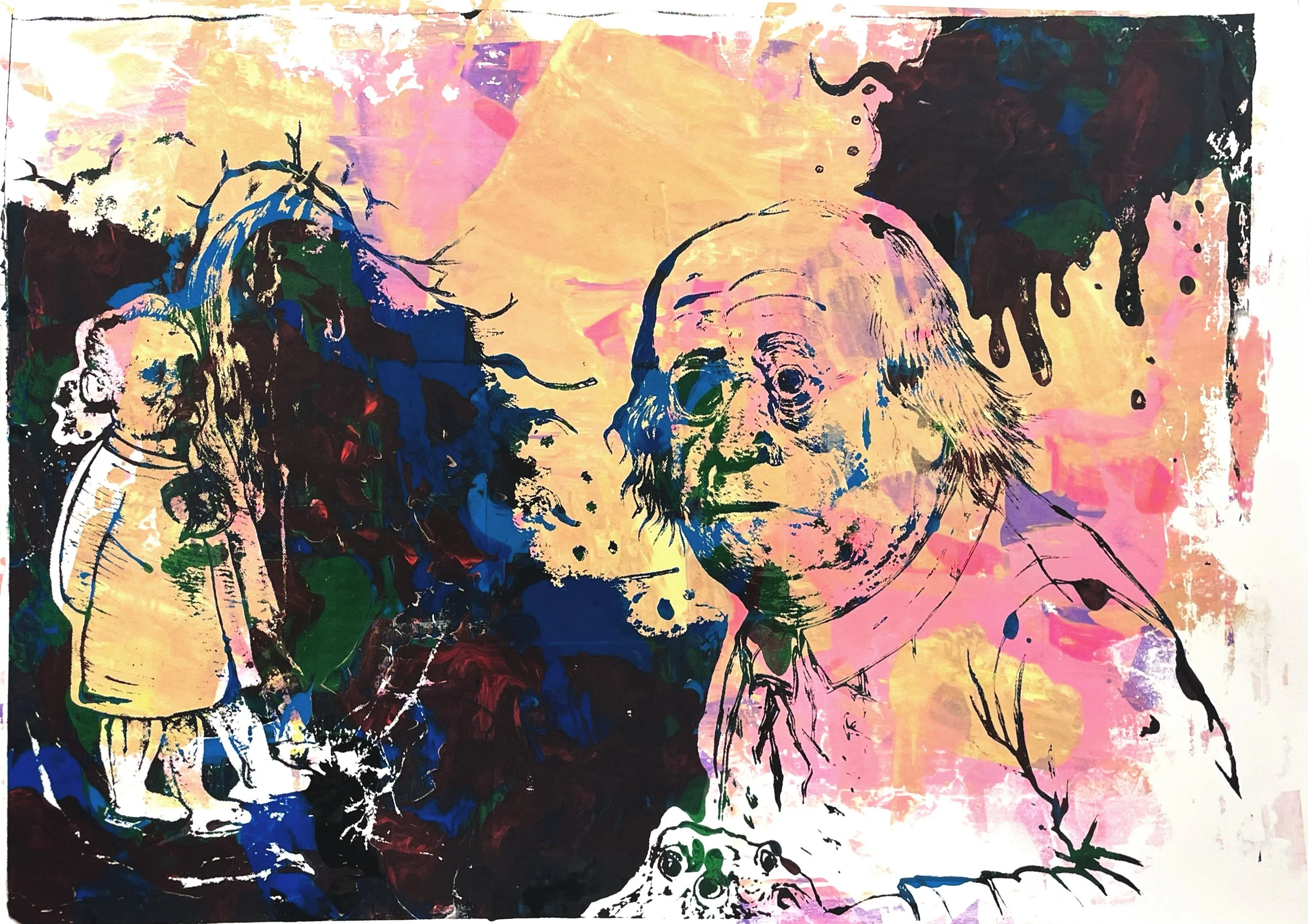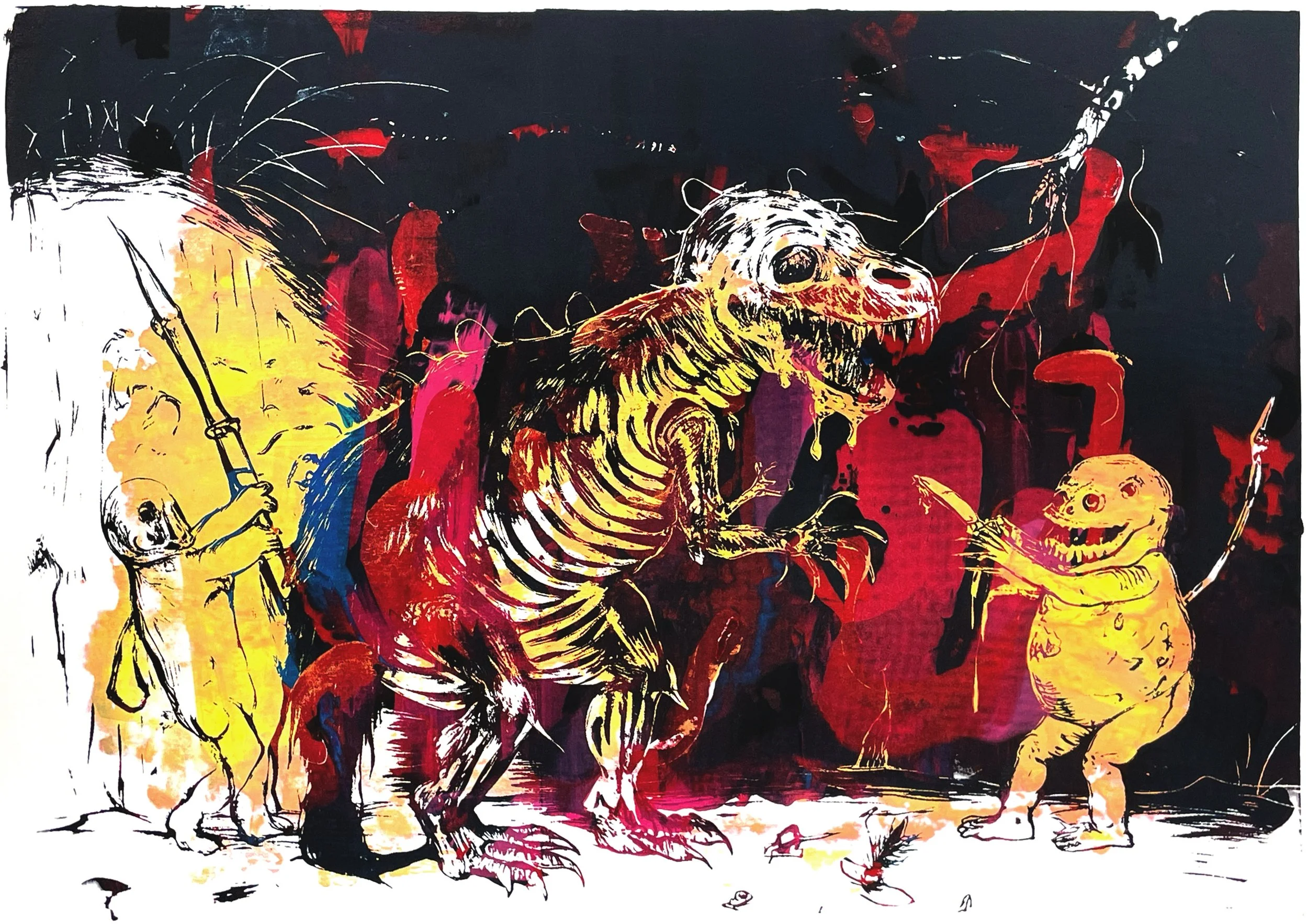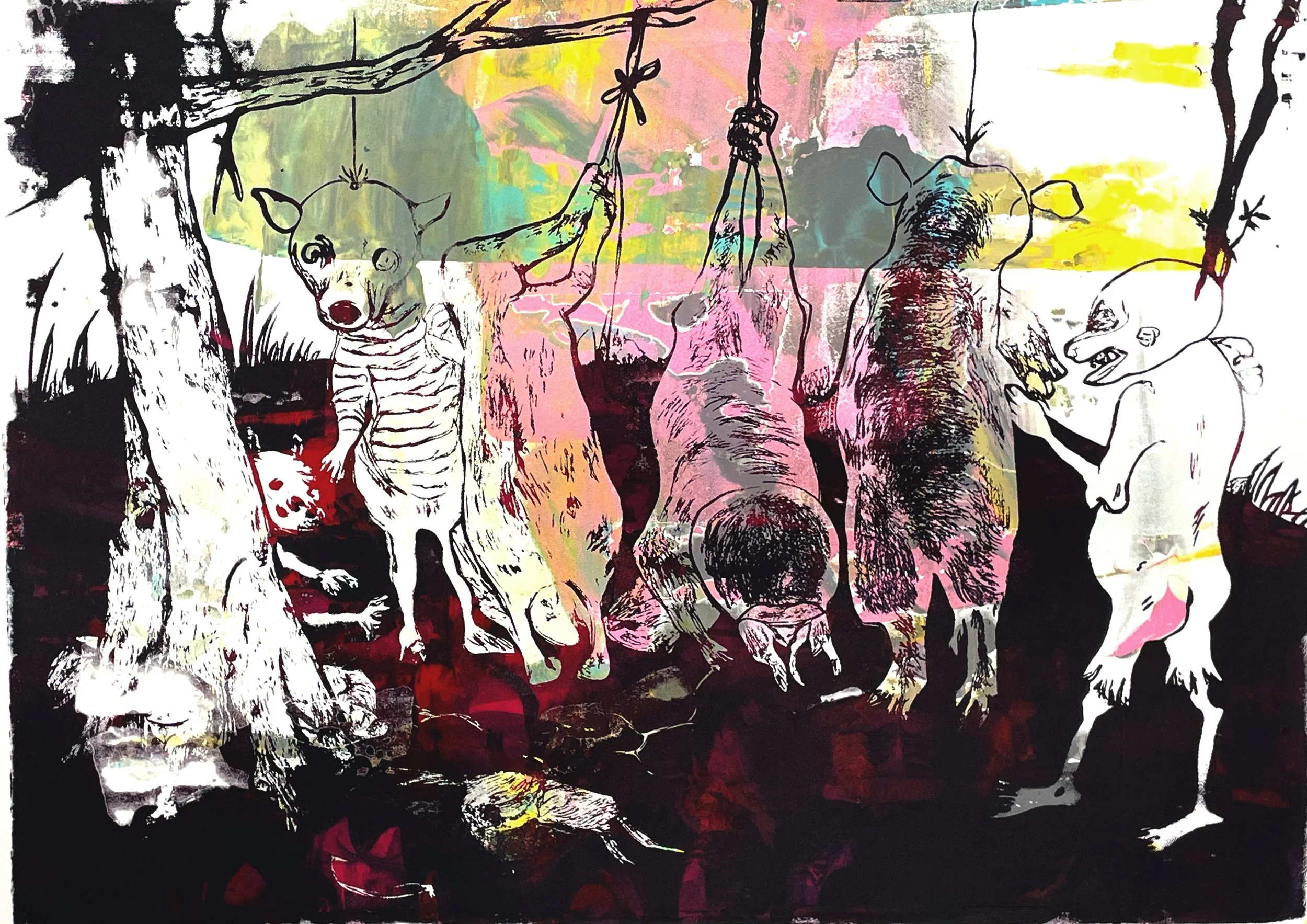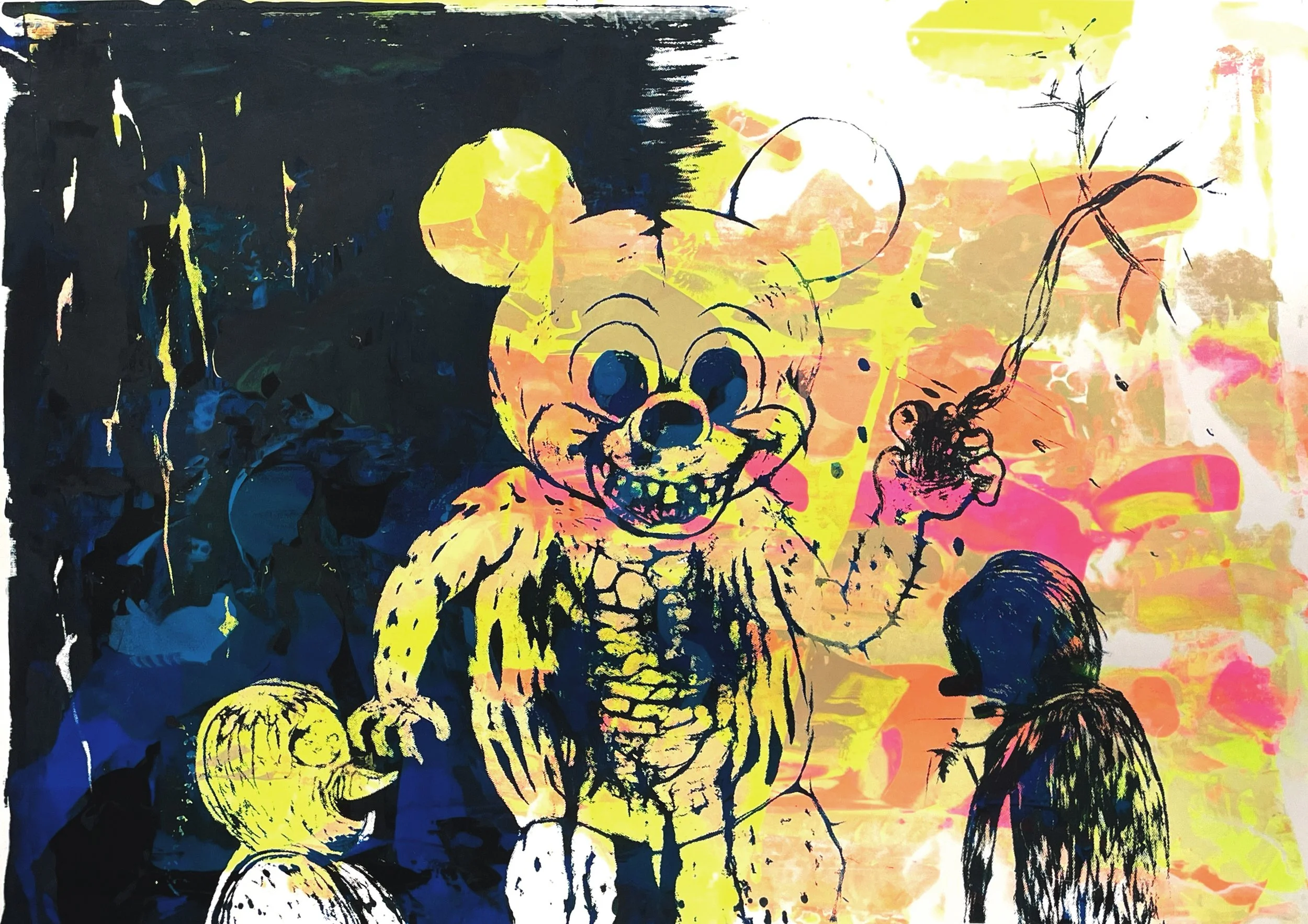 In the blink of an eye, the joyful images of childhood here transform into instruments of bitterness and disappointment, evolving into a dozen symbols of unfulfilled hopes. These colors flow across the canvas like dark arteries, carrying the poison of past futile aspirations, akin to bloody storms raging in the depths of our unmet desires. Looking at this multitude, it is impossible not to feel how dreams of the unrealized intertwine with the sharpness of loss, creating a resounding void where promised happiness once resided.
